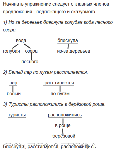 1. Составьте схемы предложений, пользуясь образцом, данным в предыдущем упражнении. С обозначения каких членов предложения вы начнёте свою работу?