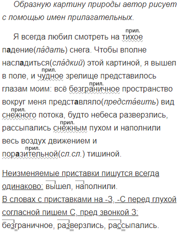 Я всегда любил смотреть на тихое падение(па́дать) снега. Чтобы вполне насладиться(сла́дкий) этой картиной, я вышел в поле, и чудное зрелище представилось глазам моим: всё безграничное пространство вокруг меня представляло(предста́вить) вид снежного потока, будто небеса разверзлись, рассыпались снежным пухом и наполнили весь воздух движением и поразительной(сл.сл.) тишиной.