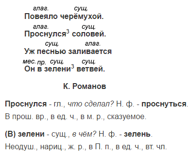 Не забудь разобрать как часть речи глагол проснулся3 и существительное (в) зелени3.