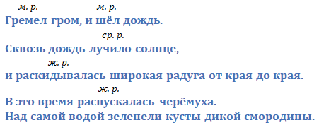 Слова для справок: кусты, дождь, гром, черёмуха, солнце, радуга.