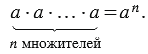 " с натуральным показателем "n", большим 1, называется произведение "n" одинаковых множителей, каждый из которых равен числу "