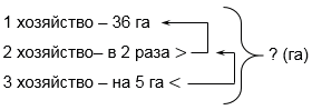 1) Белгородская область славится своими фруктовыми садами. В одном из хозяйств фруктовые сады занимают площадь 36 га, в другом - в 2 раза больше, чем в первом, а в третьем - на 5 га меньше, чем во втором. Какую площадь занимают фруктовые сады в трех хозяйствах?