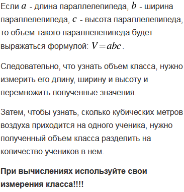Вычислите объем своего класса. Сколько кубических метров воздуха приходится на одного ученика?