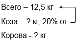 Зимой для хорошего удоя козе и корове в сутки давали 12,5 кг сена. Из них коза съедала 20% всего сена. Сколько килограммов сена съедала корова?