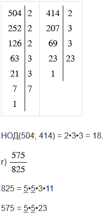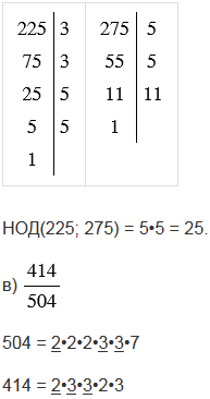 Разложите каждое число на простые множители, зачеркните общие множители и запишите наибольшее число, на которое делятся числа каждой пары: