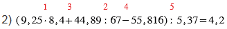 2) (9,25•8,4+44,89 : 67 - 61,816) : 5,37.