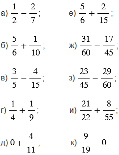 1. Сложение и вычитание дробей с разными знаменателями.