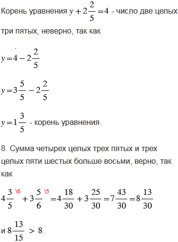 8. Сумма четырех целых трех пятых и трех целых пяти шестых больше восьми.