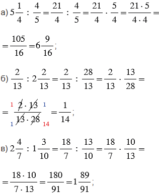 Чтобы выполнить деление, смешанные числа преобразовываем в неправильные дроби. Чтобы преобразовать смешанное число в неправильную дробь, надо целую часть числа умножить на знаменатель дробной части и к полученному произведению прибавить числитель дробной части; эту сумму записать как числитель неправильной дроби, а в ее знаменатель записать знаменатель дробной части смешанного числа.