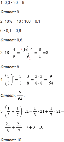 5. Сумму одной третьей и одной седьмой умножьте на двадцать один.
