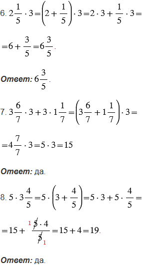 6. Чтобы умножить смешанное число на натуральное число, используем распределительное свойство умножения, а именно, чтобы умножить смешанное число на натуральное число, можно: