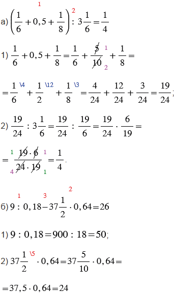 Красные числа, стоящие сверху над действиями, показывают в каком порядке нужно выполнять действия.