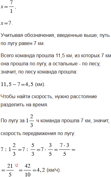 Команда в соревновании по ориентированию на местности прошла маршрут, равный 11,5 км, причем по лугу она шла