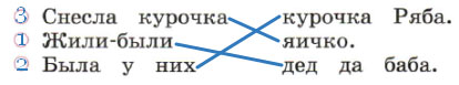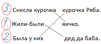 • Соедини линией части предложений. Обозначь цифрой (1, 2, 3), в каком порядке нужно поставить предложения, чтобы получилось начало сказки.