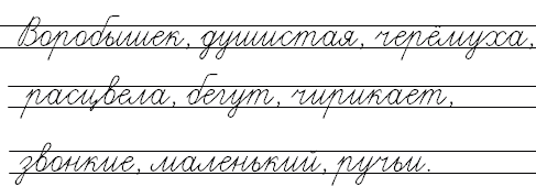 Составим предложения с данными словами. Маленький воробышек радостно чирикает, купаясь в лучах солнца. Созрела душистая черёмуха и наполнила ароматом всё вокруг. Звонкие ручьи бегут по дорожкам.