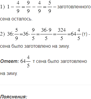 заготовленного на зиму сена было израсходовано на кормление животных, осталось 36 т. Сколько тонн сена было заготовлено на зиму?