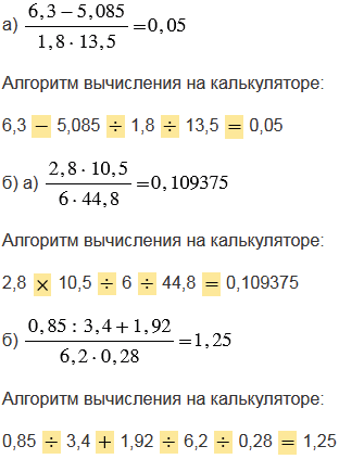 б) Составьте для калькулятора алгоритм нахождения значения выражения и выполните по нему вычисления: