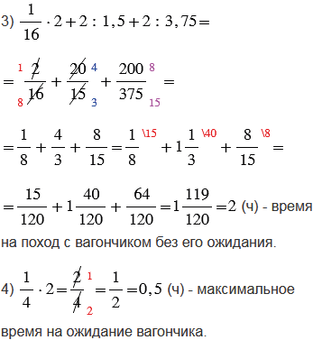 5) 2 + 0,5 = 2,5 (ч) - время на поход с вагончиком и его ожидание.