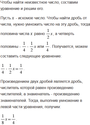 Четверть от половины числа равна одной четвёртой. Найдите это число.