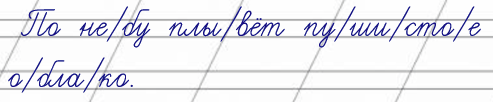 2. Прочитай ещё раз текст упр. 1. Посмотри: слова медленно, кучевые не уместились на строке и части этих слов были перенесены на другую строку. На месте переноса поставлена небольшая горизонтальная чёрточка (-).