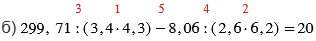 б) 299, 71 : (3,4 • 4,3) - 8,06 : (2,6 • 6,2).