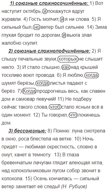 Прочитайте. Выпишите сложные предложения в следующем порядке: 1) союзные сложносочинённые; 2) союзные сложноподчинённые; 3) бессоюзные. Проверьте друг у друга выполненное задание, попросите одноклассника обосновать свой выбор.