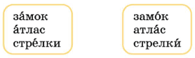 Запиши слова-названия рисунков. Обозначь в них ударение.