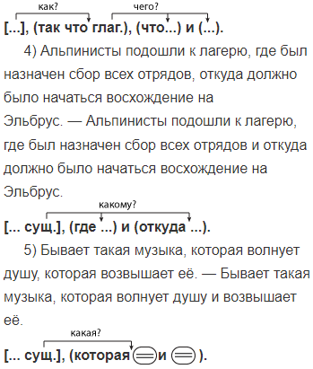 1) Когда ремонт трамвайных путей был закончен когда дорогу залили асфальтом возобновилось движение транспорта. 2) В субботу я пошёл к своему товарищу которому было пятнадцать лет который тоже поступил в техникум. 3) Я задумался так что даже не заметил как село солнце как стало смеркаться. 4) Альпинисты подошли к лагерю где был назначен сбор всех отрядов откуда должно было начаться восхождение на Эльбрус. 5) Бывает такая музыка, которая волнует душу, которая возвышает её.