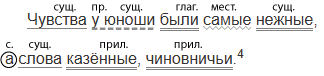 Чувства1 у юноши были самые нежные, а слова казённые, чиновничьи.4 (К. Чуковский)