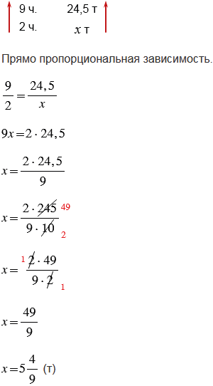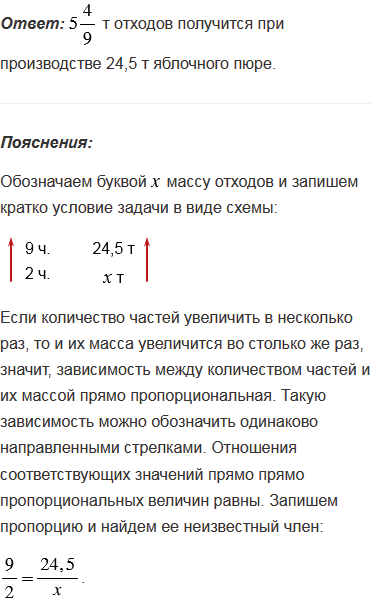 При производстве яблочного пюре на 9 частей пюре приходится 2 части отходов. Сколько отходов получится при производстве 24,5 т яблочного пюре?