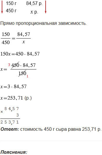На ценнике указана стоимость 150 г сыра - 84,57 р. Чему равна стоимость 450 г этого же сыра?