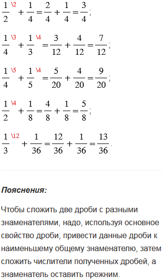 Представьте дроби в виде суммы двух дробей с числителем 1.