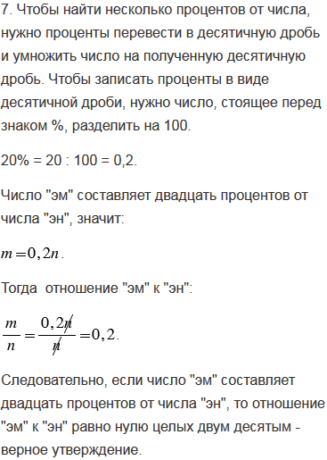 7. Если число "эм" составляет двадцать процентов от числа "эн", то отношение "эм" к "эн" равно нулю целых двум десятым.