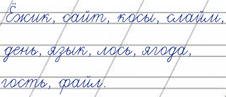 Буквы расположены по алфавиту в словах ёжик, косы, день, лось, гость.