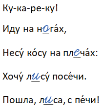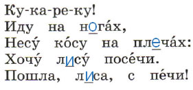 Объясним написание слов с пропущенными буквами: нога́х - но́ги, плеча́х - пле́чи, лису́, лиса́ - ли́сонька.