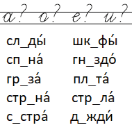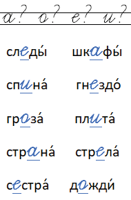 К словам с пропущенными буквами нужно подобрать проверочные слова, чтобы безударный гласный стал ударным: