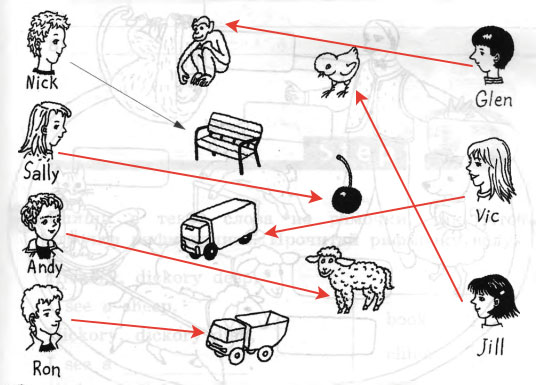 (22), и соедини имена детей с изображениями того, что они видят.