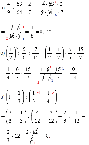 При выполнении умножения дробей, чтобы вычисления были проще, не надо перемножать сразу, лучше сделать это после сокращения. Сократить дробь - значит, разделить ее числитель и знаменатель на одно и то же число (наибольший общий делитель).