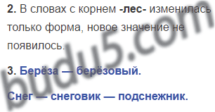 2. Что изменяется в словах с корнем -лес-? Появилось ли новое значение, или изменилась только форма?