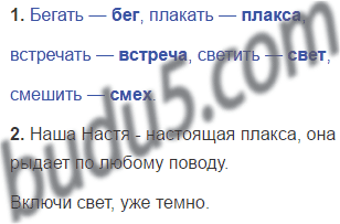 Бегать — ..., плакать — ..., встречать — ..., светить — ..., смешить — ... .