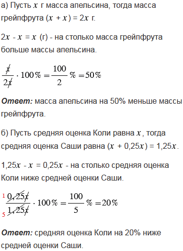 а) На сколько процентов масса апельсина меньше массы грейпфрута, если масса масса грейпфрута на 100% больше массы апельсина?