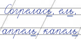 Объясним написание выделенных букв: ель, апрель, капель (ь для обозначения мягкости согласного); сосна́ - со́сны; капе́ль - ка́пать; весна́ - вёсны.