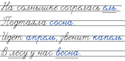 Слова для справок: весна, сосна, капель, апрель, ель.