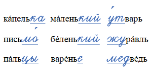 • Обозначь ударение. Объясни значение любого слова.