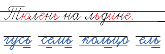 Тюлень - [т'], [л'], [н'].
