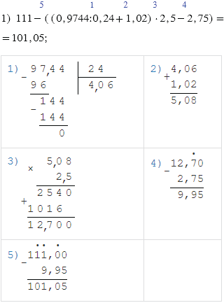 1) 111-((0,9744:0,24+1,02)•2,5-2,75);