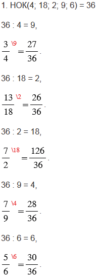 1) найти наименьшее общее кратное всех знаменателей дробей, т. е. наименьший общий знаменатель;