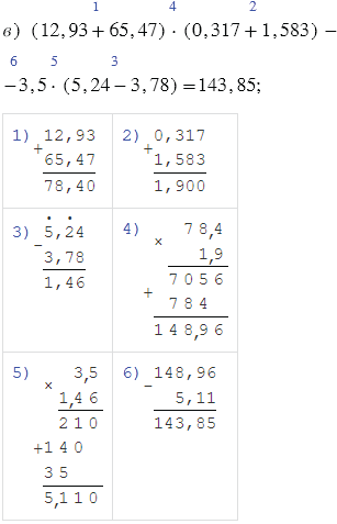 в) (12,93+65,47)•(0,317+1,583)-
