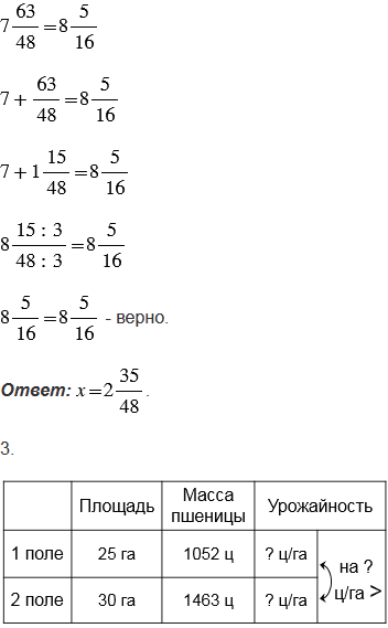 3. С поля площадью 25 га собрали 1052 ц пшеницы, а с поля площадью 30 га собрали 1463 ц пшеницы.