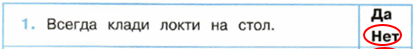 4. Попугай спешит посоветовать, как нужно вести себя за столом. Каким советам ты последуешь, а каким – нет? Обведи "Да" или "Нет".